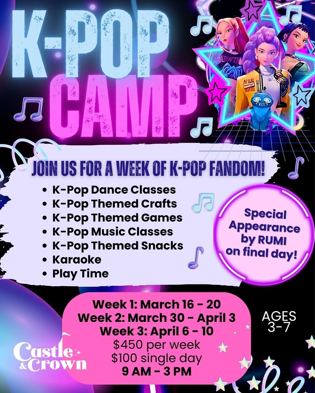 K-Pop Themed Dance Classes, Crafts, Games, Music Classes, and snacks!